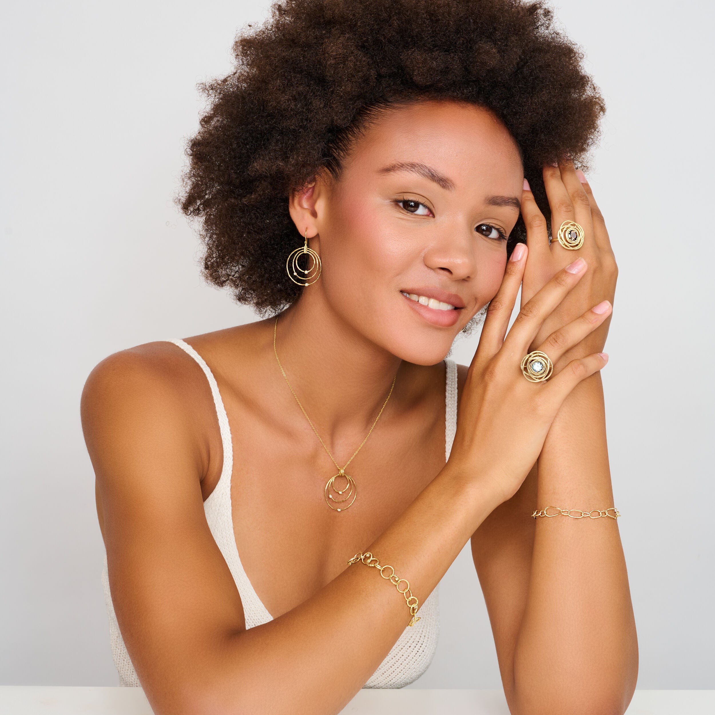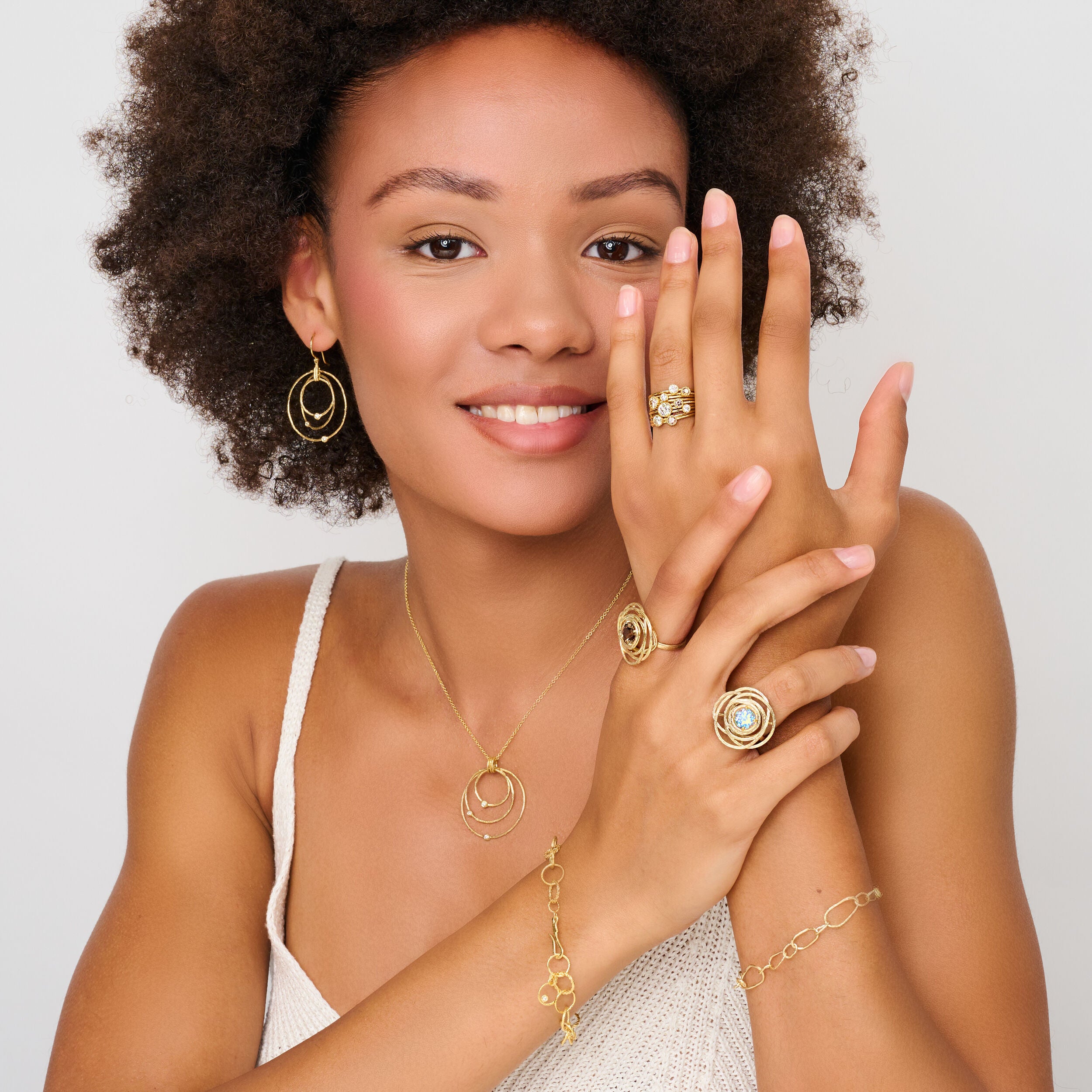 A Blue Topaz takes center stage, framed by a 14k gold scribble-effect halo. The organic, freeform design makes this ring a bold yet versatile statement, perfect for those who appreciate a blend of sophistication and individuality.