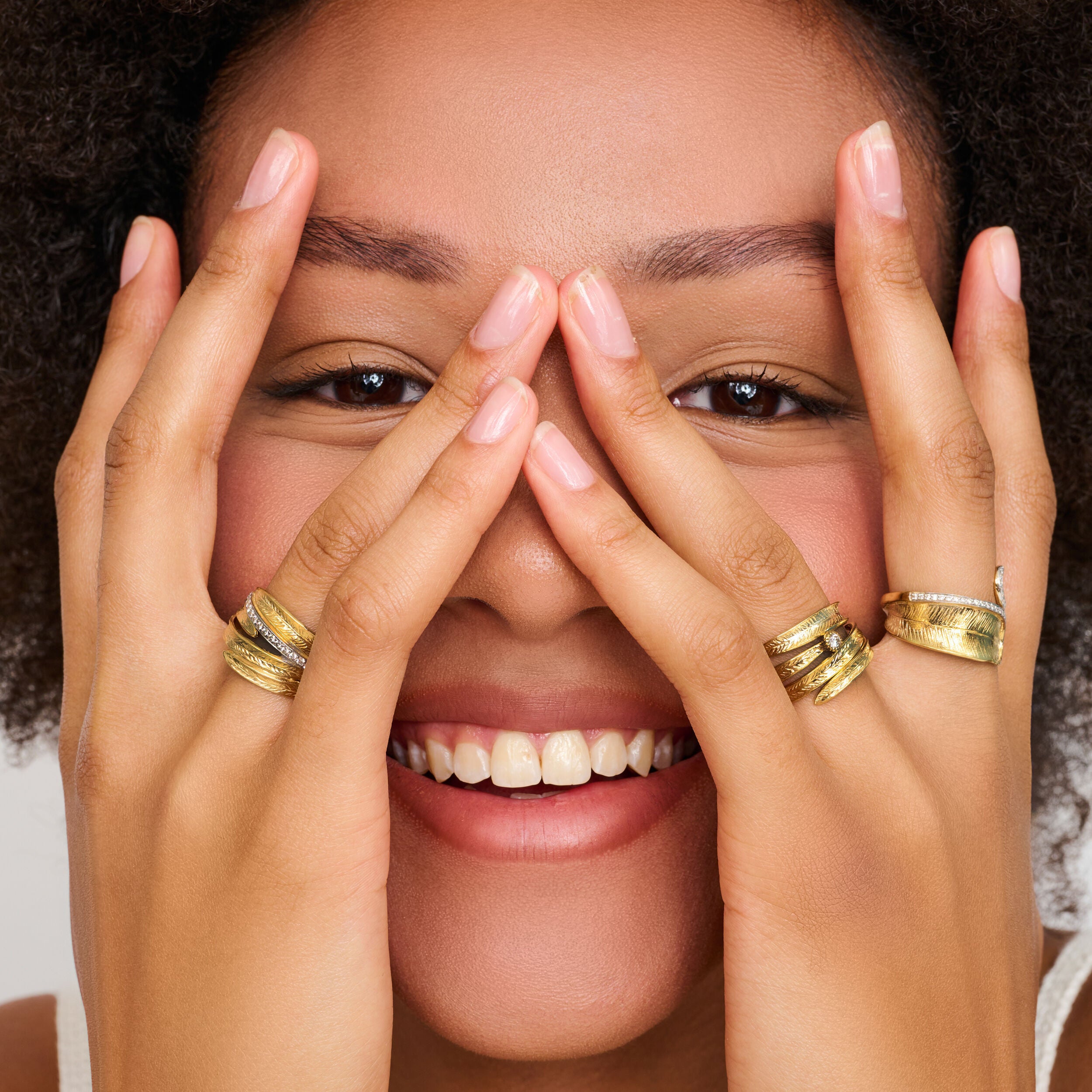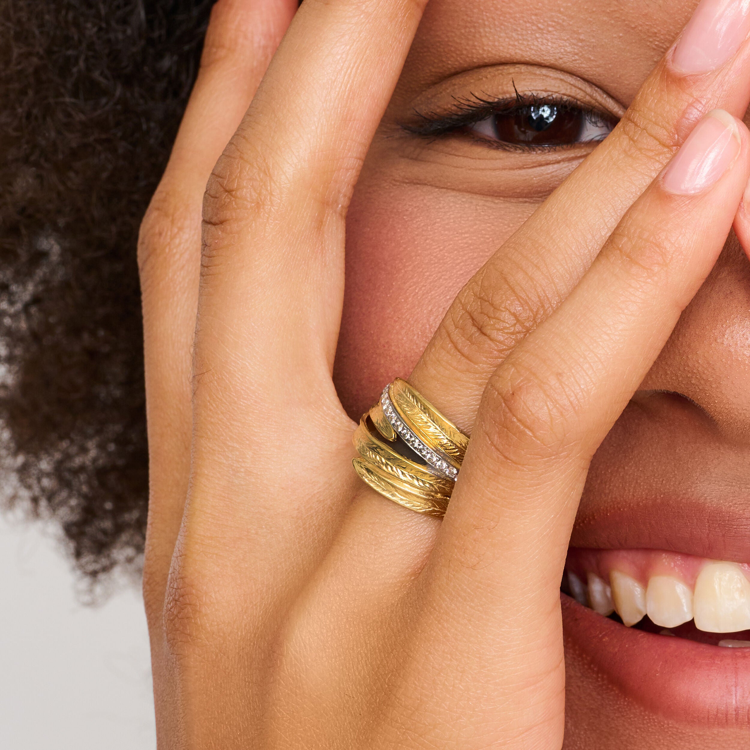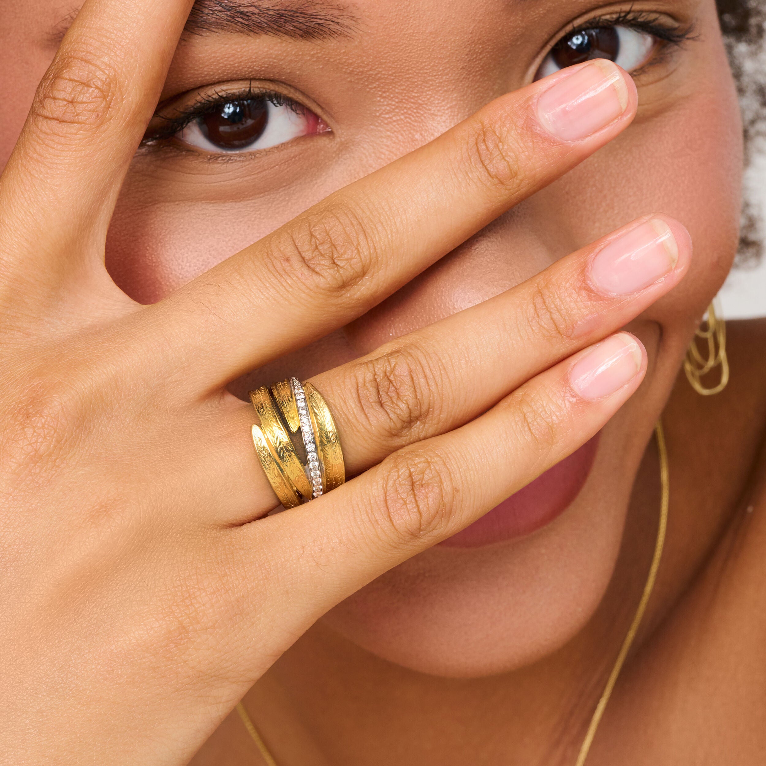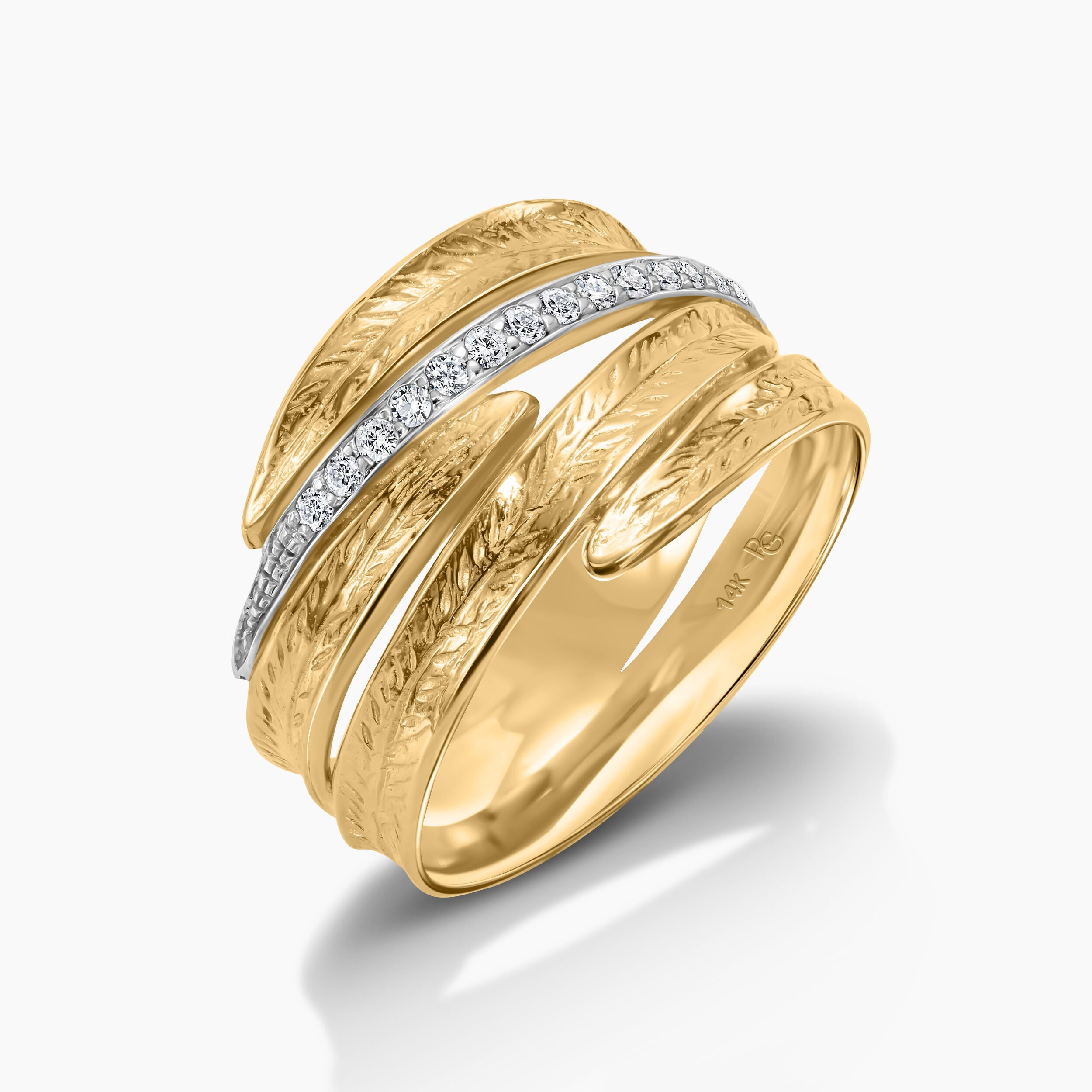 Wide Leaf Gold & Pavé Diamond Stack Ring