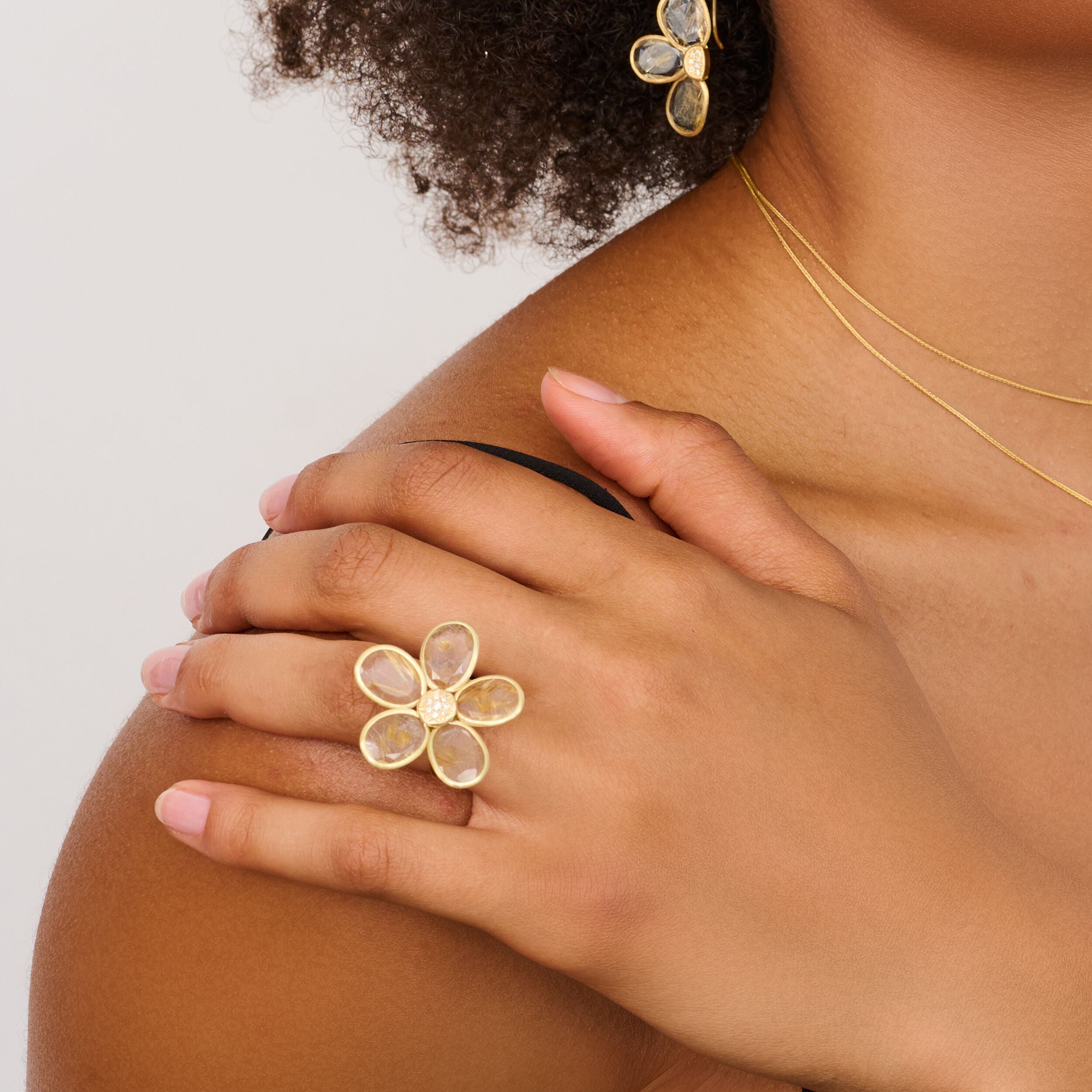 Rutile Quartz Gemstone & Diamond Floral Ring