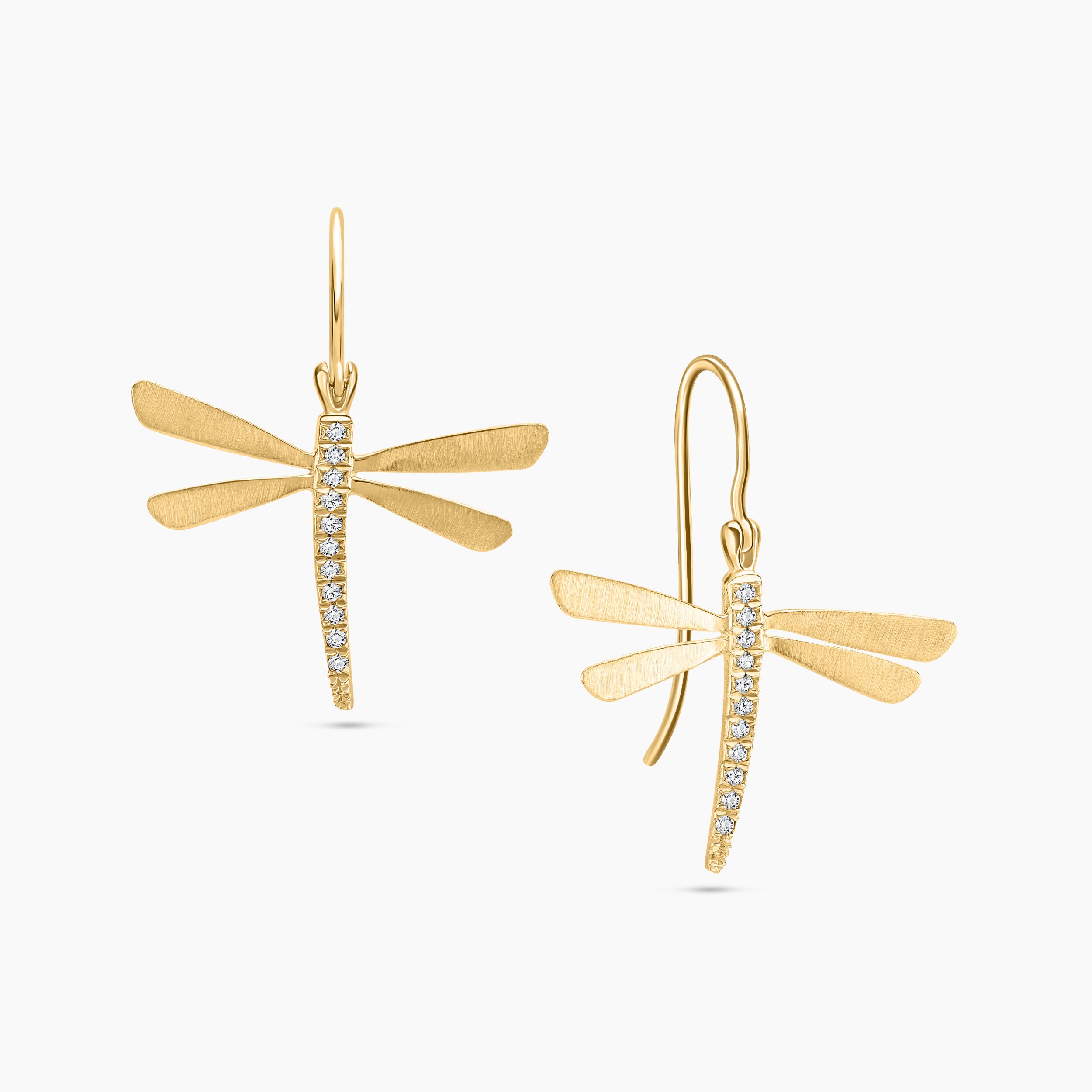 Brushed Gold & Diamond Butterfly Drop Earrings