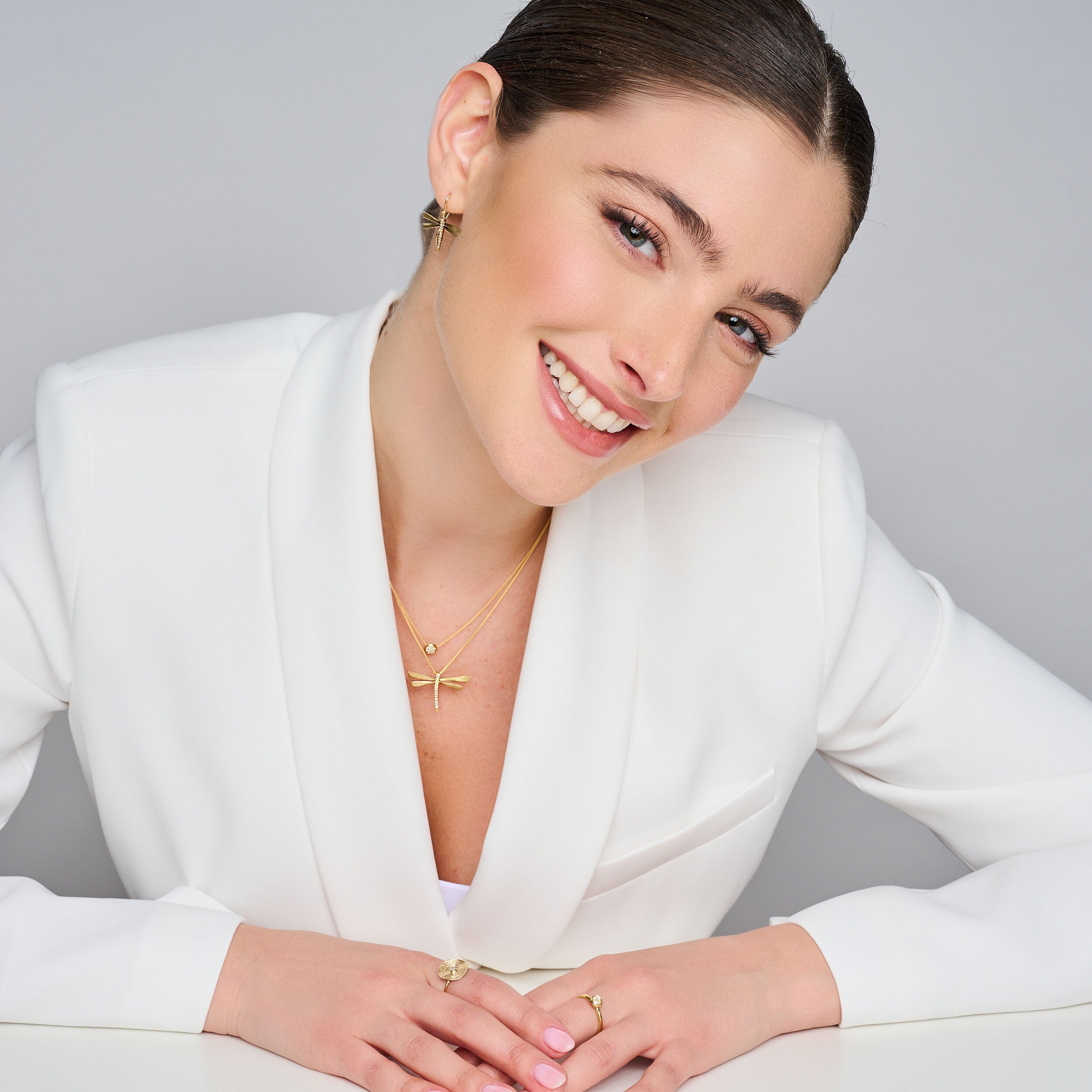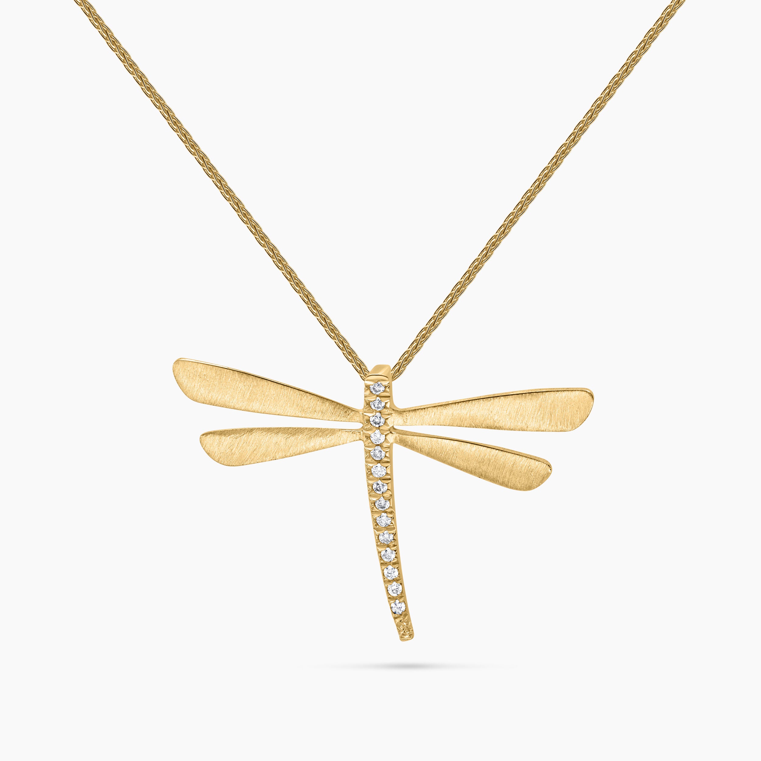 The enchanting firefly pendant is brought to life with its delicate detailing and intricate design. Crafted in solid 14k brushed gold, the body of the creature is adorned with a row of diamonds cascading gracefully down its form.