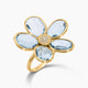 The Bloom Ring mesmerizes with its exquisite design, beautifully embodying the essence of nature in a vibrant flower shape. Crafted in 14k gold, it features five petals of Sky Blue Topaz Gemstone surrounding a brilliant diamond center, creating a breathtaking centerpiece that radiates elegance and charm.