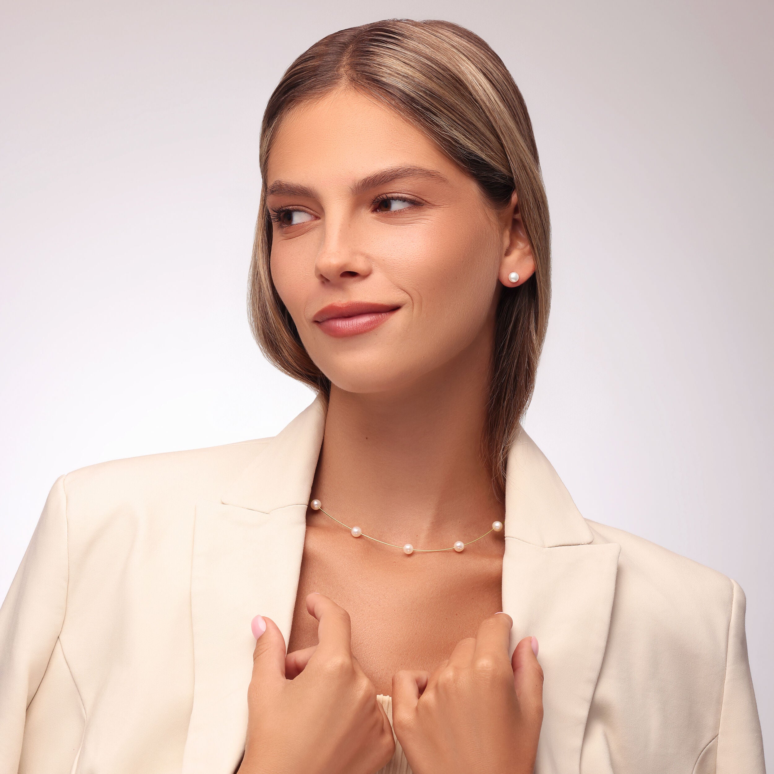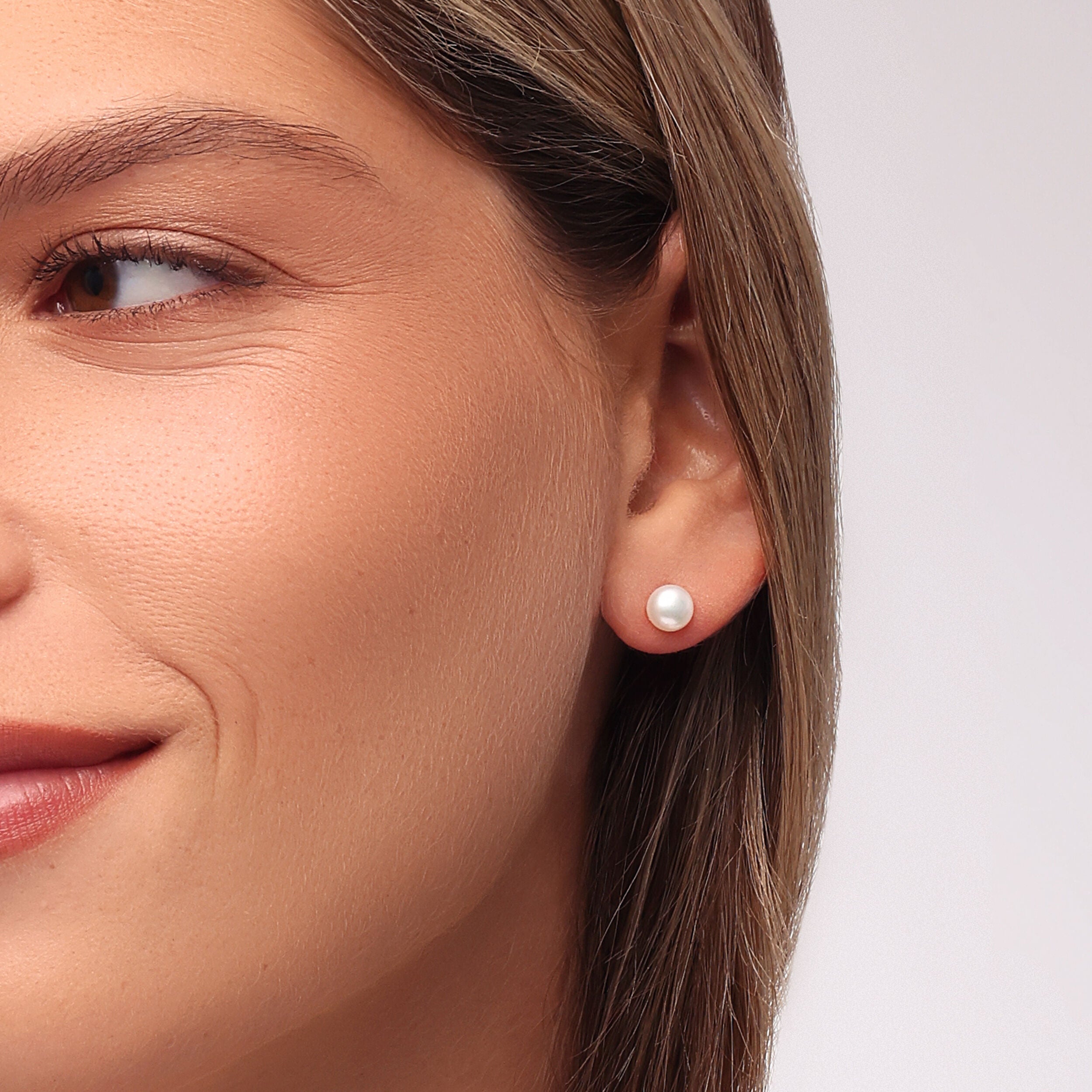 These lustrous round pearl stud earrings radiate effortless beauty. Set in 14k gold, their timeless design makes them the perfect piece to transition seamlessly from day to night. Pearl size ranges from 5mm-5.5mm.