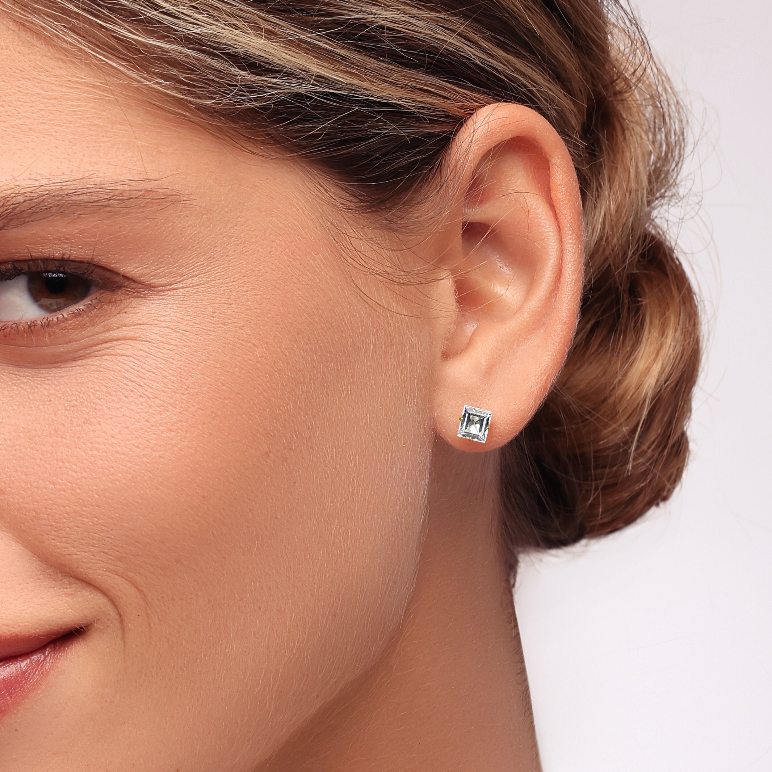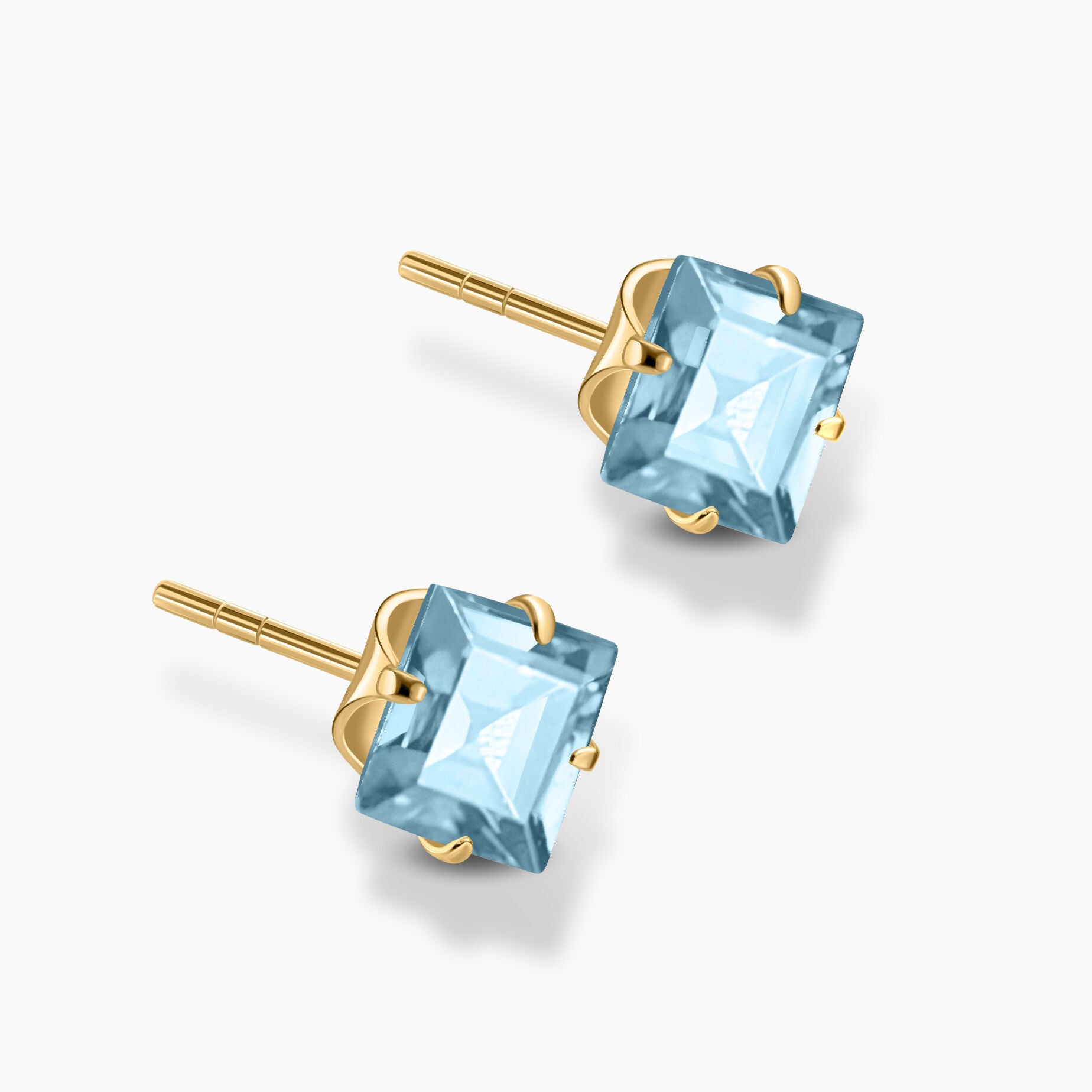 These electrifying stud earrings feature a 5mm square cut Blue Topaz Gemstones. Set in a 14k gold prong setting. The azure tones dazzle while effortlessly bringing a cool sense of sophistication.